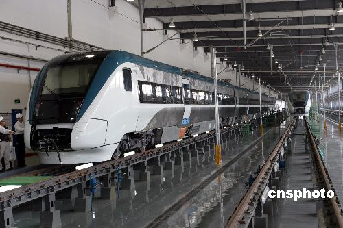 图为青岛四方-庞巴迪-鲍尔铁路运输设备有限公司,正在生产国产化CRH1型时速200公里及以上和谐号动车组。