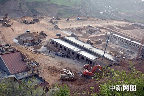 图为半坡小学建筑工地山体滑坡现场。