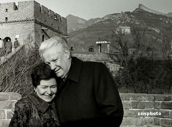 图:叶利钦夫妇登长城
