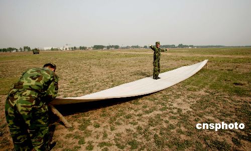 初教机飞行是在草地机场展开的,没有固定的跑道,每次飞行官兵要根据起飞方向用T字布摆设跑道