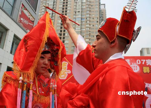 图:外国留学生在武汉“体验”中式传统婚礼(2)