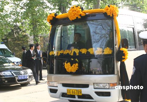 四月二十七日,全国人民代表大会常务委员会副委员长、中国天主教爱国会主席傅铁山追悼会在北京八宝山革命公墓举行。中新社发 廖文静 摄