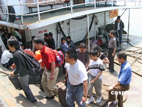 5月6日,众多游客乘坐客船从宜昌港上岸。当日,湖北宜昌港进出船舶24艘,其中6艘进行旅客翻坝运输,其余船舶在城区码头靠泊,接待中外旅客近万人。黄金周已近尾声,探亲者、打工者和学生们逐渐上路返回,宜昌港出现旅客返程高峰。中新社发 韩玉洪 摄