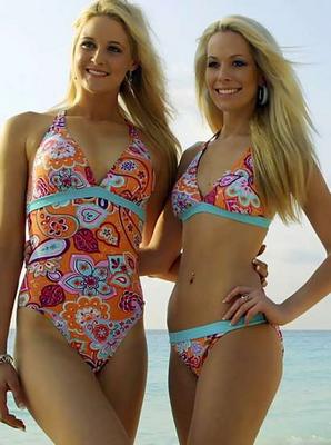 澳大利亚小姐金伯利-布斯提(Kimberley Busteed,左)和新西兰小姐劳拉尔-巴里特(Laural Barret,右)拍姐妹花,谁姐谁妹一看就知。