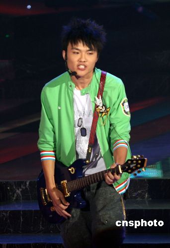 6月1日晚,“2007快乐中国仁和闪亮快乐男声”全国总决赛11进9火热进行。一直以唱歌实力著称的王铮亮在人气环节略逊一等,最终以短信落败,告别了“快男”舞台。而以摇滚风格令人眼亮的姚政在演唱完《终结孤单》后,也因短信票数最低终结了自己在“快男”舞台上的脚步。中新社发 邓霞 摄