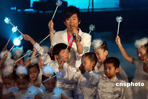 “快乐男声”参赛选手张杰在表演