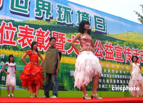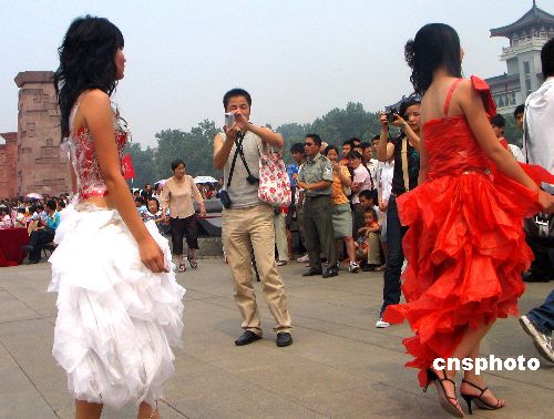 图:西安大学生着塑料袋服饰宣传环保(2)