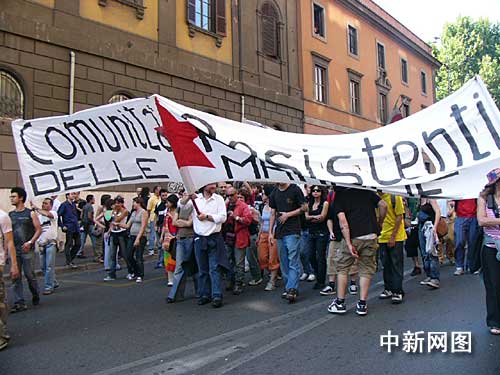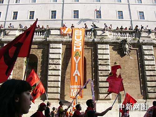 据意大利《欧联时报》报道,到德国参加八国峰会的美国总统布什在峰会结束之后抵达意大利首都罗马,对意大利进行访问。当地时间9日,罗马约上万人上街游行示威,他们沿途呼喊着各种反战口号,抗议布什来访。