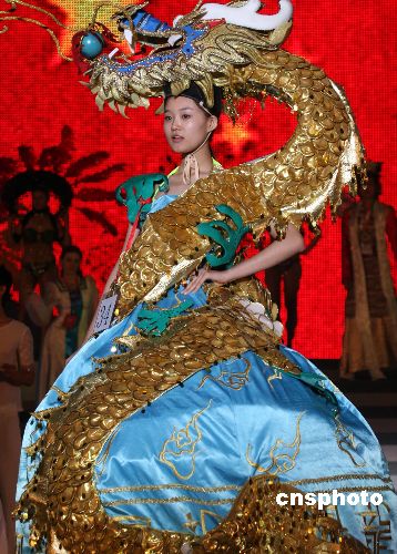 图为中国内地选手乔齐T台演绎“龙的传人”。