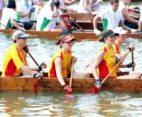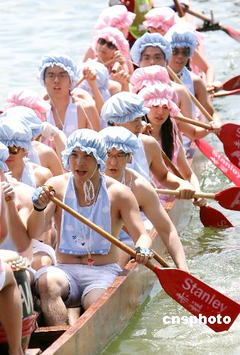 香港旅游景区赤柱19日举办“友邦赤柱国际龙舟锦标赛2007”﹐200多支队伍﹐400名划手﹐一万多名观众将赤柱海滩变成沸腾的海滩。中国传统的端午节划龙舟﹐在此成为中外人士欢乐嘉年华﹐也是香港最富中国传统节日色彩的节庆活动。据介绍﹐参赛队伍包括华人﹑外国人﹑各社会机构及企业的专业和业余队伍。举办了40年的龙舟赛越来越盛大。中新社发 王丽南 摄