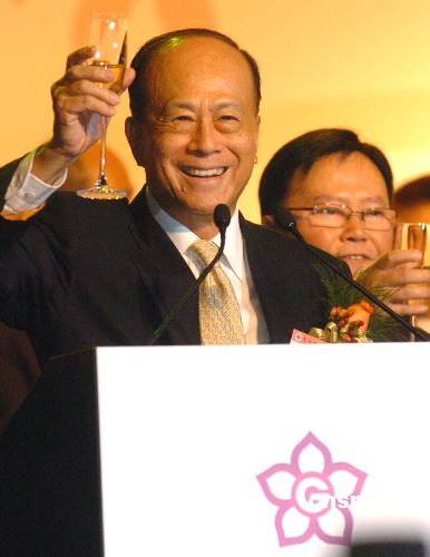 香港侨界社团联会永远荣誉会长李嘉诚在联欢宴会上致词后举杯祝酒。