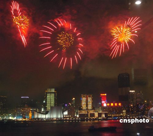 组图:烟花绽放庆香港回归十周年(2)