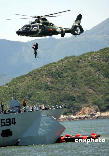 解放军驻港部队参与香港海域海难搜救演练(图)