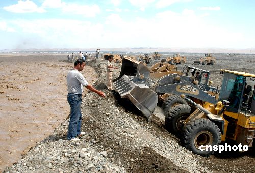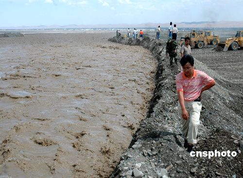 7月11日,抢险人员密切监视洪水情况。当日,新疆鄯善县爆发60年一遇的洪水袭击,数间民房和大片农田被淹,无人员伤亡。目前抗洪抢险工作正在进行中。中新社发 刘健 摄