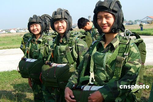 初夏,中国女子空降兵在鄂北某地举行了一项精彩的军事训练表演,向二十多个国家的驻华武官展示了她们的飒爽英姿。自一九九一年七月组建以来,女子空降队跳过了装备到空降兵部队的各类伞型、各种机型,经历了南疆海岛、水网稻田、戈壁沙漠、鄂北原始森林等各种复杂地形的空降演习和试训任务,成为空降兵部队能跳任何机型、伞型,敢跳高、新、险科目的“专业”伞兵。 中新社发 谭超 摄