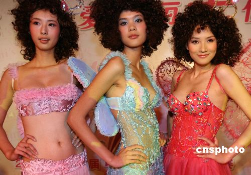 | 7月12日晚,中国著名模特经纪公司东方宾利与著名内衣公司爱慕联手在北京举行“寻找爱美丽天使--2007第四届中国内衣模特大赛”启动仪式。是次大赛将在中国12个城市分赛区进行选拔活动,最后选出36名优胜者参加在南宁举行的总决赛,大赛打破以往职业模特选拔贯有的传统条件,参赛选手身高可降低至1.65米以下,三围玲珑有致、肌肤体态健康的美丽女孩将成为中国新一代内衣超模,获胜者将带上“爱美丽天使”桂冠,并为爱慕旗下的品牌做形象代言人。中新社发 钱兴强 摄