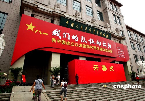 图:“国防和军队建设成就展”紧锣密鼓布展(2)