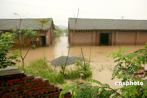 被山洪淹没冲毁的四川省广安市华蓥山区阳和种鸡场。