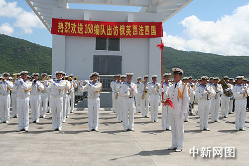 军乐队为出访“勇士们”送行。
