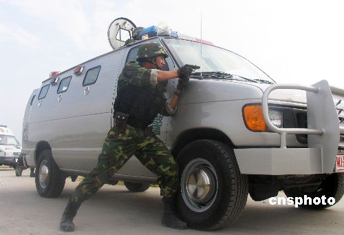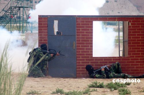 图:宁夏武警反恐战士夏练三伏砺精兵