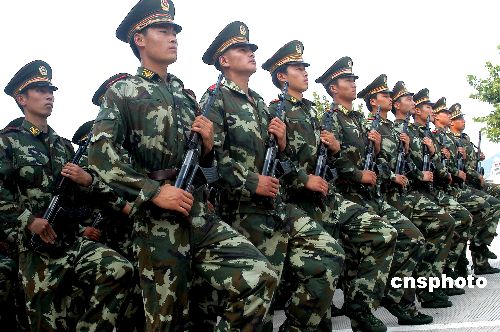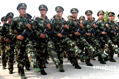 7月25日,武警连云港市公安边防部队开展“迎‘八一’、练精兵、展风采”为主题的“军事技能大练兵”活动,官兵们顶着35摄氏度的高温苦练军事技能,从难从严锤炼部队,用军人特有的方式迎接中国人民解放军建军80周年。中新社发 王春 摄