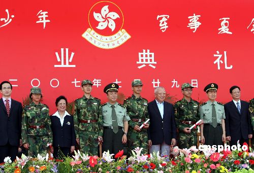 全国政协副主席董建华(右4)、军事夏令营名誉主席董赵洪娉(左3)、驻港部队司令员王继堂(左5)、政委刘良凯(右2)、中联办副主任郑坤生(右1)、外交部驻港特派员公署副特派员杨子刚(左1)等香港各界众多嘉宾出席。