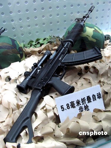 中国军队新装备的新款5.8毫米的折叠自动步枪。