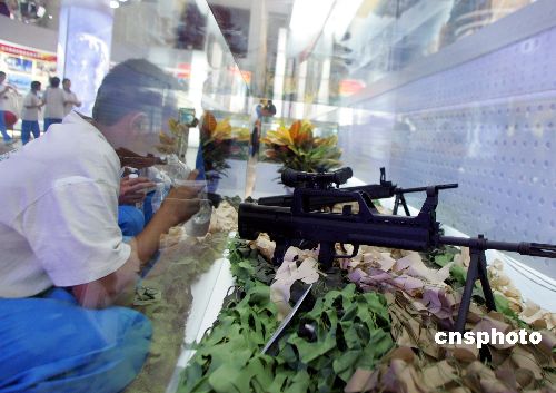 随着“八一”建军节的临近,在北京军事博物馆举行的“国防和军队建设成就展”逐渐升温,特别是暑假中的一些学生纷纷前来参观。中新社发 宋吉河 摄