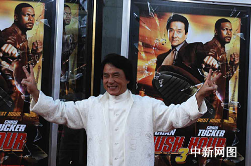 中新网好莱坞七月三十一日电 (记者 贾国荣) 美国电影大片《尖峰时刻3》七月三十一日在好莱坞中国剧院举行首映式,片中担任主角的著名中国香港影星成龙踏上红地毯,获得各族裔粉丝的欢呼尖叫。
