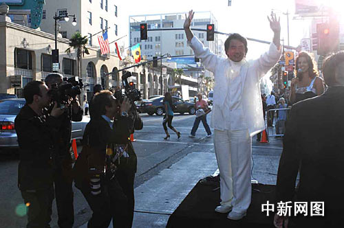 成龙踏上好莱坞星光大道红地毯颇受追捧。