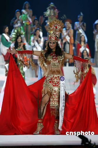 图为获得最佳民族服装奖的洪都拉斯小姐Castillo。