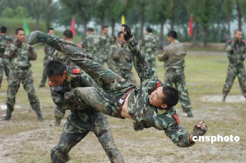 8月1日,牡丹江市举办了建军80周年国防动员大演兵活动。武警战士、边防警察战士以及人民武装部的民兵1000多人参加了大演兵。中新社发 张克非 摄