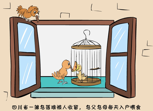 新闻浮世绘:四川省鸟父母入户喂一落难雏鸟