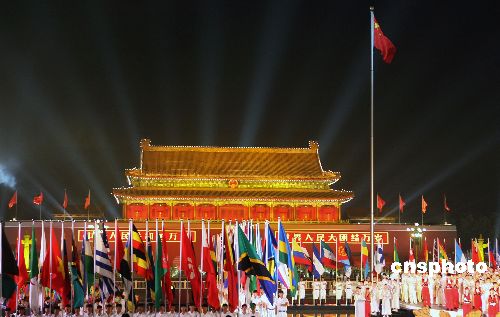 2007年8月8日晚,“北京奥运会倒计时一周年庆祝活动”在天安门广场举行,国际奥委会主席罗格向世界各国、各地区奥委会的代表发出邀请函。国际奥委会首次选择在主办城市举行这项仪式表明,北京奥运会的筹办工作被国际奥委会充分肯定。中新社发 任海霞 摄