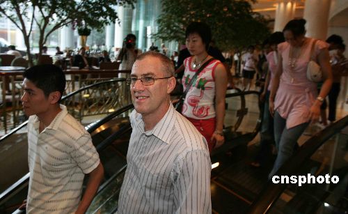 图为中国女篮主教练汤姆·马赫抵达现场。