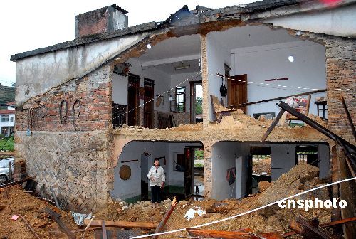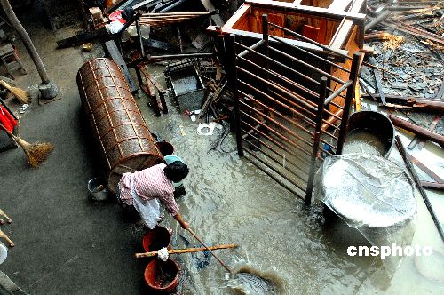 八月十五日下午,福建安溪蓝田乡蓝田村华章角落的村民在清理自家院落、家具等。从八月十三日下午十七时至十五日下午十五时,泉州市普降大到暴雨,局部区域降雨量达到百年一遇,导致四个县(市、区)五十个乡镇受灾,受灾人口三十三点五万人,倒塌房屋八百三十九间,死亡三人;农作物受灾五点四万亩,公路毁坏八点二六公里,损坏输电线路十六点五六公里,水利设施损毁二百四十处,直接经济损失达一点四亿元人民币。中新社发 傅丹丹 摄