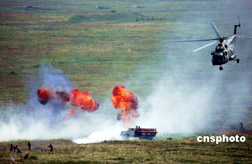 当地时间八月十七日下午,“和平使命-二00七”上海合作组织联合反恐军演在俄罗斯车里雅宾斯克正式举行。中新社发 张雷 摄