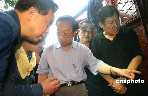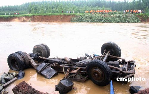 八月十六日至十七日,山东新泰地区连续集中降雨二百0五毫米,引发山洪暴发,导致当地的柴汶河东都河堤被冲垮,河水溃入附近的两座煤矿--山东华源矿业公司煤矿和名公煤矿,一百八十一名矿工被困井下。中新社发 王鲁平 摄