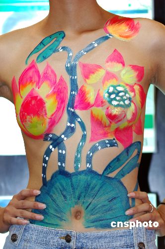 组图:人体彩绘模特香秀无锡房交会