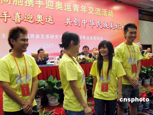 8月22日下午,“两岸同胞携手迎奥运”青年交流活动在北京首都大酒店闭幕。中新社发 李岩 摄