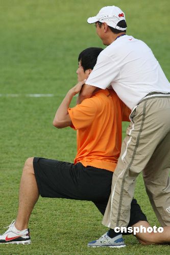 图:刘翔在日本大阪作赛前做适应训练(2)