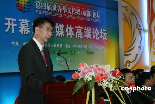 9月2日,第四届世界华文传媒论坛在四川成都开幕,图为海外媒体代表、《明报》(北美)行政总裁吕家明在开幕式上致辞。中新社发 张勤 摄