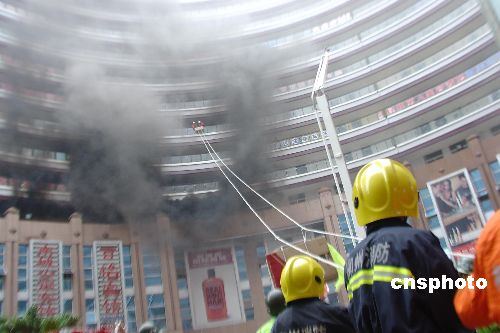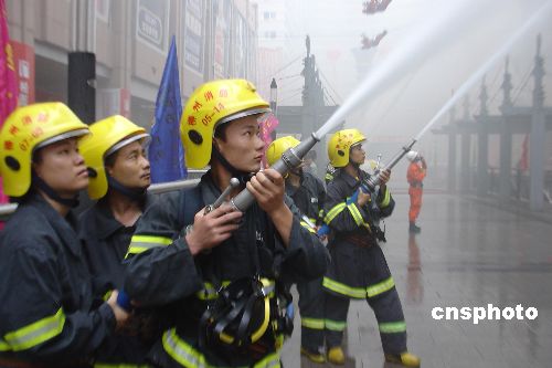 9月3日,广西公安消防总队在柳州市举行人员聚集场所火灾扑救跨区域联合演习,来自桂林、河池、来宾等周边城市的消防部队和柳州市交警、武警、医疗救护等灭火救援协同单位参加了此次联合作战演练。中新社发 杨志雄 摄