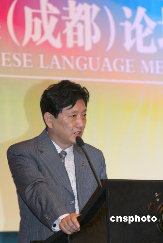 9月3日,在四川成都召开的第四届世界华文传媒论坛进行大会发言,图为西班牙《欧华报》董事长王绍基在发言中谈华文媒体在创造海外和谐社会中的特殊作用。中新社发 张勤 摄