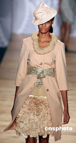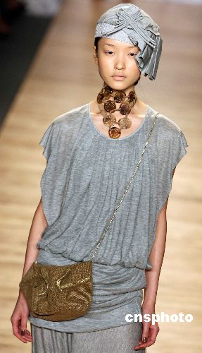 日前,在曼哈顿布莱恩公园举行的纽约时装周上,世界知名品牌宝姿(Ports 1961)发布了主题为“非洲之旅”的2008春夏系列时装。来自苏丹的世界超级名模艾莉克·万克(Alek Wek)、埃塞俄比亚的世界名模、联合国世界卫生组织的亲善大使莉娅(Liya Kebede);目前在国际T台最红的中国名模杜鹃及来自欧美等五大洲的名模们从容舒适地演绎了一场欢快的“非洲之旅”。中新社发 曹唐 摄
