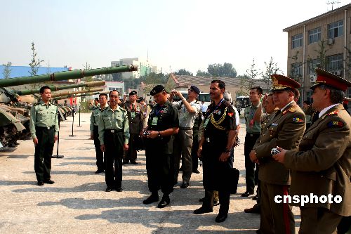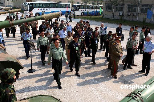 来自上合组织和东盟成员国以及美、英、法等35个国家的55名军事观察员,9月24日上午在北京解放军装甲兵工程学院参观。他们在这所解放军学院参观了装甲车训练场、装甲车模拟训练室、官兵宿舍等。9月25日他们将观摩在沈阳军区洮南训练基地举行的“勇士-2007”摩托化步兵师进攻战斗实兵实弹演习。中新社发 宋吉河 摄