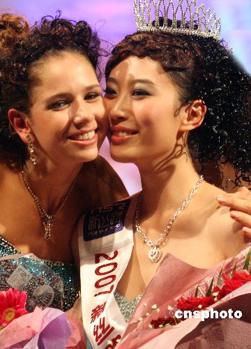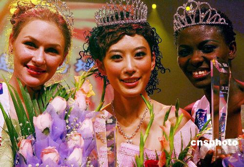 9月27日晚,“美丽无锡·2007新丝路世界模特大赛总决赛”在江苏无锡市举行,来自世界各地的50位模特参加了角逐,选手们经过活力装、泳装、职业装和晚装的比赛后,来自中国的30号选手王依丽获得冠军、来自加纳的23号选手米拉希获得亚军、来自瑞典的22号选手克里斯蒂娜获得季军。中新社发 钱兴强 摄