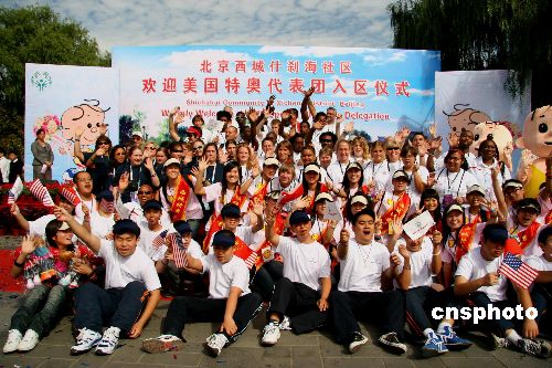 9月28日,2007年世界夏季特殊奥林匹克运动会北京市社区接待活动在西城区什刹海举行。来自美国的60多名特奥会运动员走进社区。中新社发 富田 摄