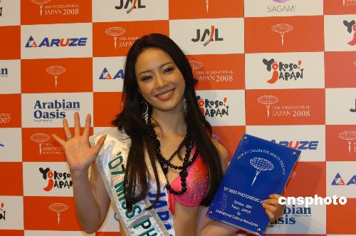图为日本小姐白田久子被在场记者们评为最上镜小姐。