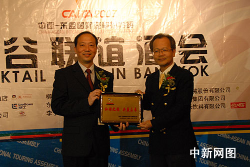 10月3日晚,2007中国-东盟国际汽车拉力赛车队在曼谷美殿河滨大酒店举行联谊酒会,泰国政府部门有关官员、中国驻泰国大使馆官员、当地的华人社团侨领、华商代表与拉力赛车手齐聚一堂,共同祝福中泰人民友谊地久天长。